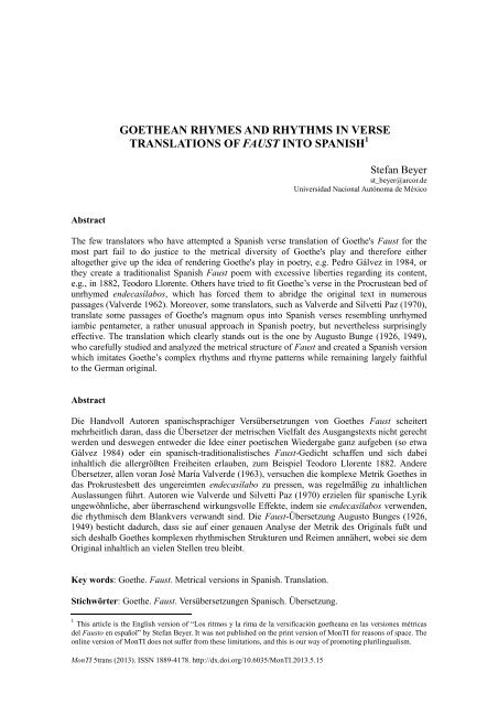 Goethean Rhymes And Rhythms In Verse Translations Of Faust Rua